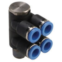 4mm (5/32") OD Tube x 1/8" BSPT - Male Double Twin Banjo Connector - Push to Connect Fitting