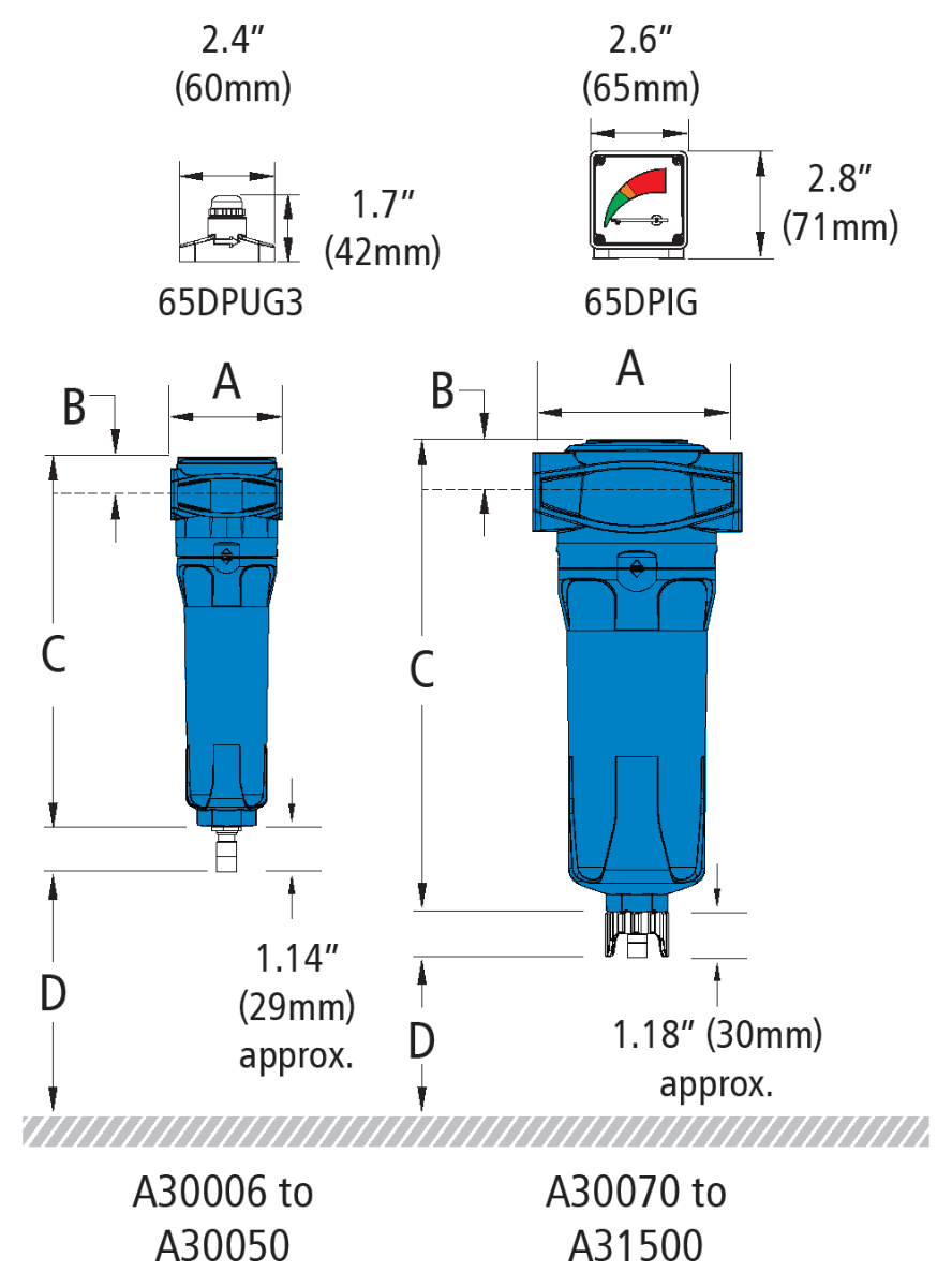 Max Working Pressure - Manual Drain300 psig20.7 barg300 psig20.7 barg300 psig20.7 barg300 psig20.7 barg